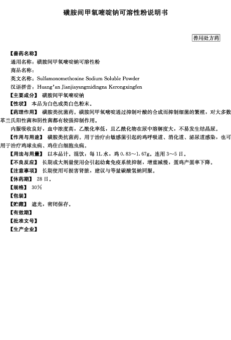 用于巴氏桿菌和大腸桿菌所致的細(xì)菌性疾病。
