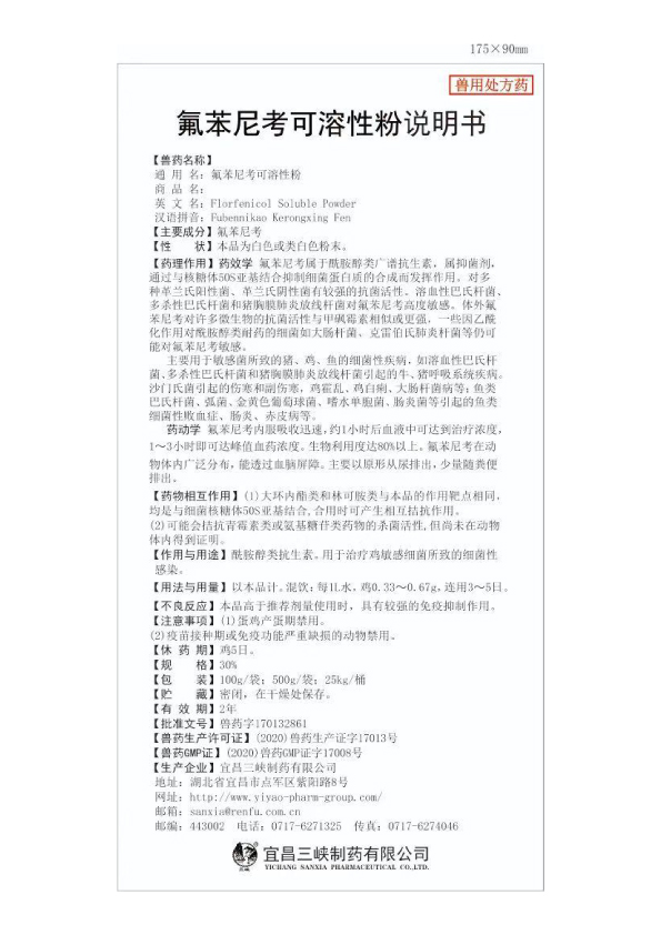 用于巴氏桿菌和大腸桿菌所致的細菌性疾病。