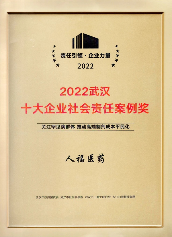 ?2月18日,“武漢首屆社會責任企業推選”活動頒獎儀式在漢舉行。人福醫藥集團等10家企業獲評“2022武漢十大社會責任案例”獎,15家企業獲評“2022武漢履行社會責任優秀企業”獎。