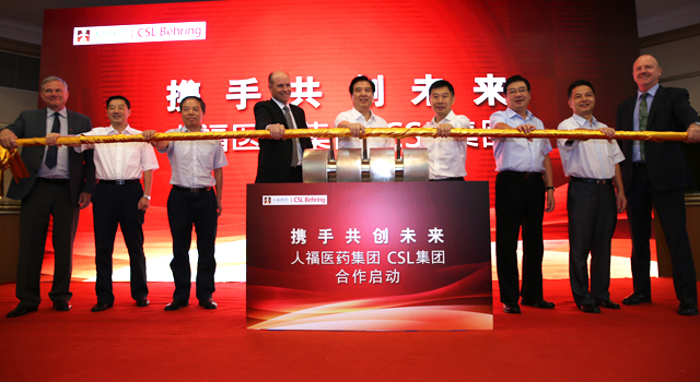 ?????? 儀式最后,黃楚平常務(wù)副省長、李有祥副市長、但長春常務(wù)副主任、王學(xué)海董事長、保爾·佩羅首席執(zhí)行官、唐杰夫領(lǐng)事等領(lǐng)導(dǎo)共同為人福醫(yī)藥集團(tuán)與CSL集團(tuán)合作推動啟動桿,這也標(biāo)志著人福醫(yī)藥集團(tuán)與CSL集團(tuán)合作正式啟動。