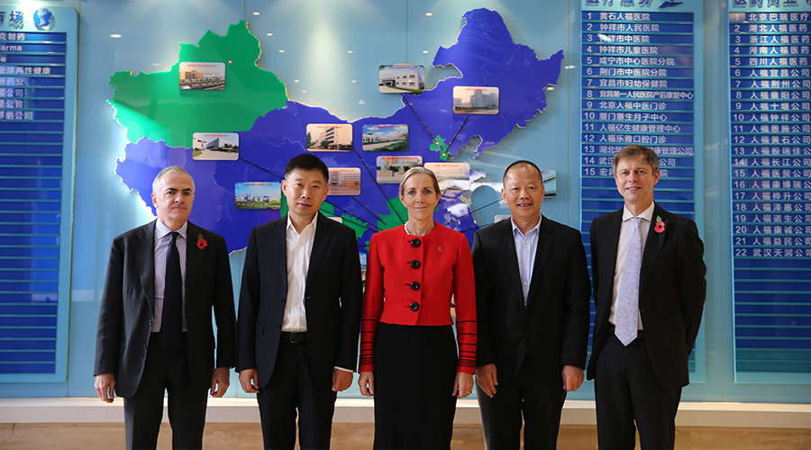 ? ? ? ?王學(xué)海董事長(zhǎng)對(duì)羅娜?費(fèi)爾海德部長(zhǎng)一行的到來表示熱烈歡迎,并向羅娜?費(fèi)爾海德部長(zhǎng)詳細(xì)介紹了人福醫(yī)藥的發(fā)展現(xiàn)狀、國(guó)際化進(jìn)展及醫(yī)療服務(wù)領(lǐng)域的拓展情況。羅娜?費(fèi)爾海德部長(zhǎng)對(duì)人福國(guó)際化及醫(yī)療服務(wù)領(lǐng)域發(fā)展進(jìn)程表示贊賞,對(duì)人福研發(fā)創(chuàng)新及積極開放的國(guó)際化合作成果印象深刻。羅娜?費(fèi)爾海德部長(zhǎng)重點(diǎn)介紹了英國(guó)醫(yī)療和生命科學(xué)領(lǐng)域的現(xiàn)狀及前景,歡迎中國(guó)企業(yè)特別是人福醫(yī)藥集團(tuán)這樣的國(guó)際化發(fā)展企業(yè)與英國(guó)展開多領(lǐng)域的合作。