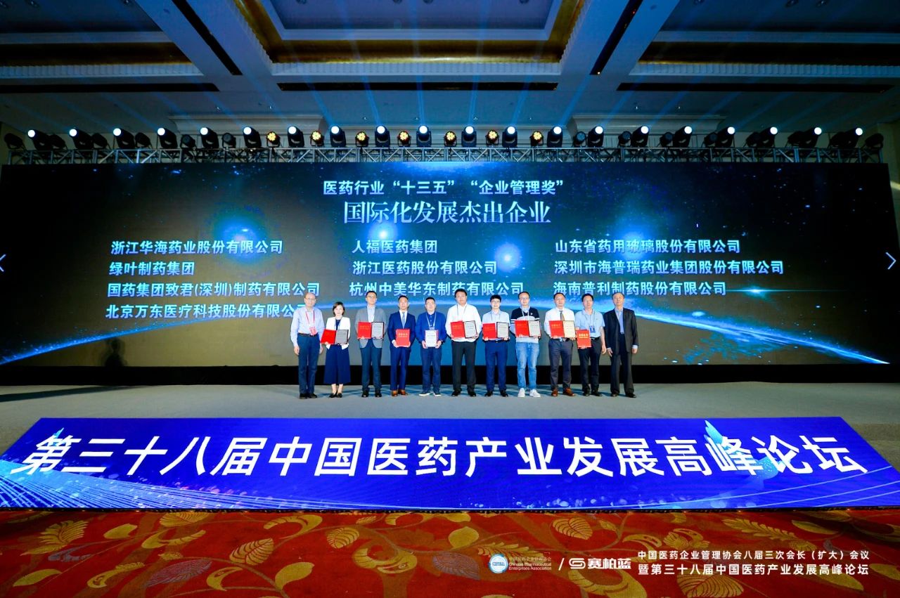 ? ? ? ?近日,由中國醫(yī)藥企業(yè)管理協(xié)會、中國非處方藥物協(xié)會主辦的第三十八屆中國醫(yī)藥產(chǎn)業(yè)發(fā)展高峰論壇在上海舉行。會議期間舉辦了醫(yī)藥行業(yè)“十三五”“企業(yè)管理獎”頒獎儀式,人福醫(yī)藥集團(tuán)獲評國際化發(fā)展杰出企業(yè)獎。